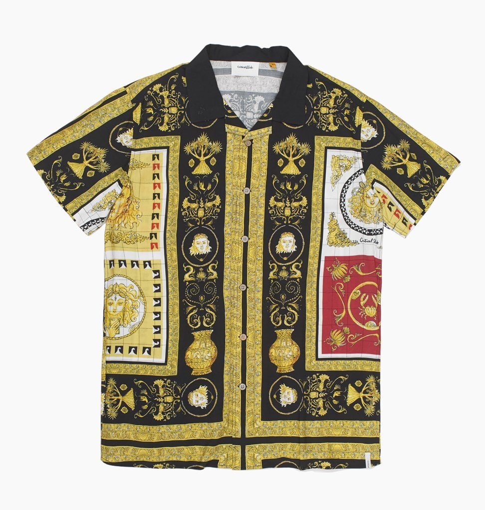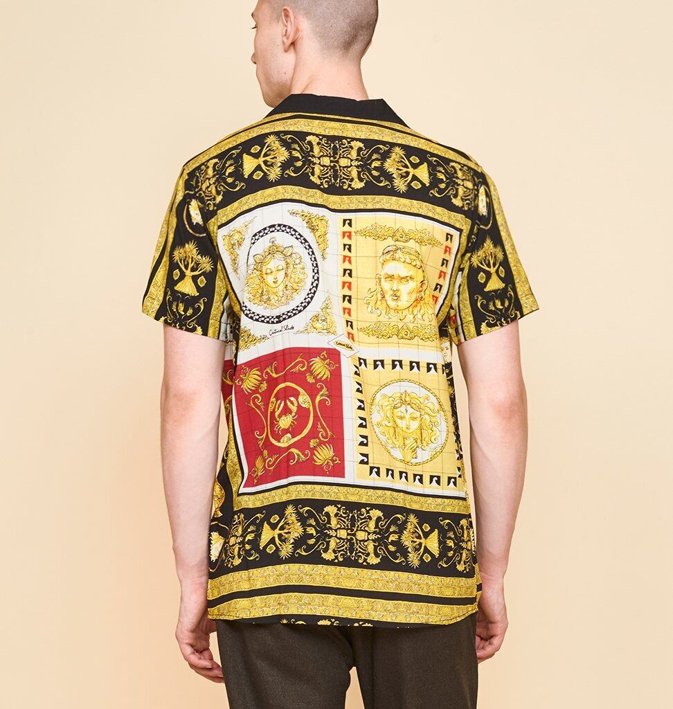 ヴ〇ルサーチを彷彿されるプリントのレーヨン100%のアロハシャツの新作です。