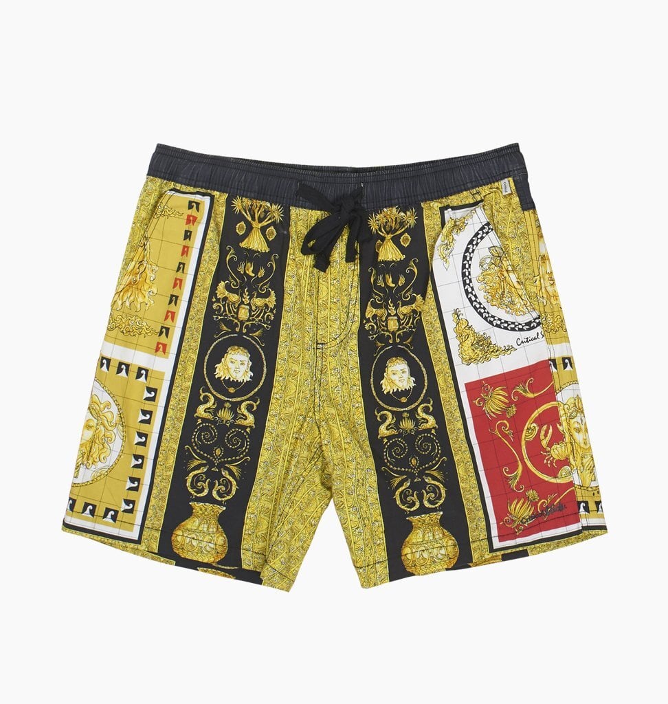 ヴ〇ルサーチのような総柄の17インチ丈ボードショーツ