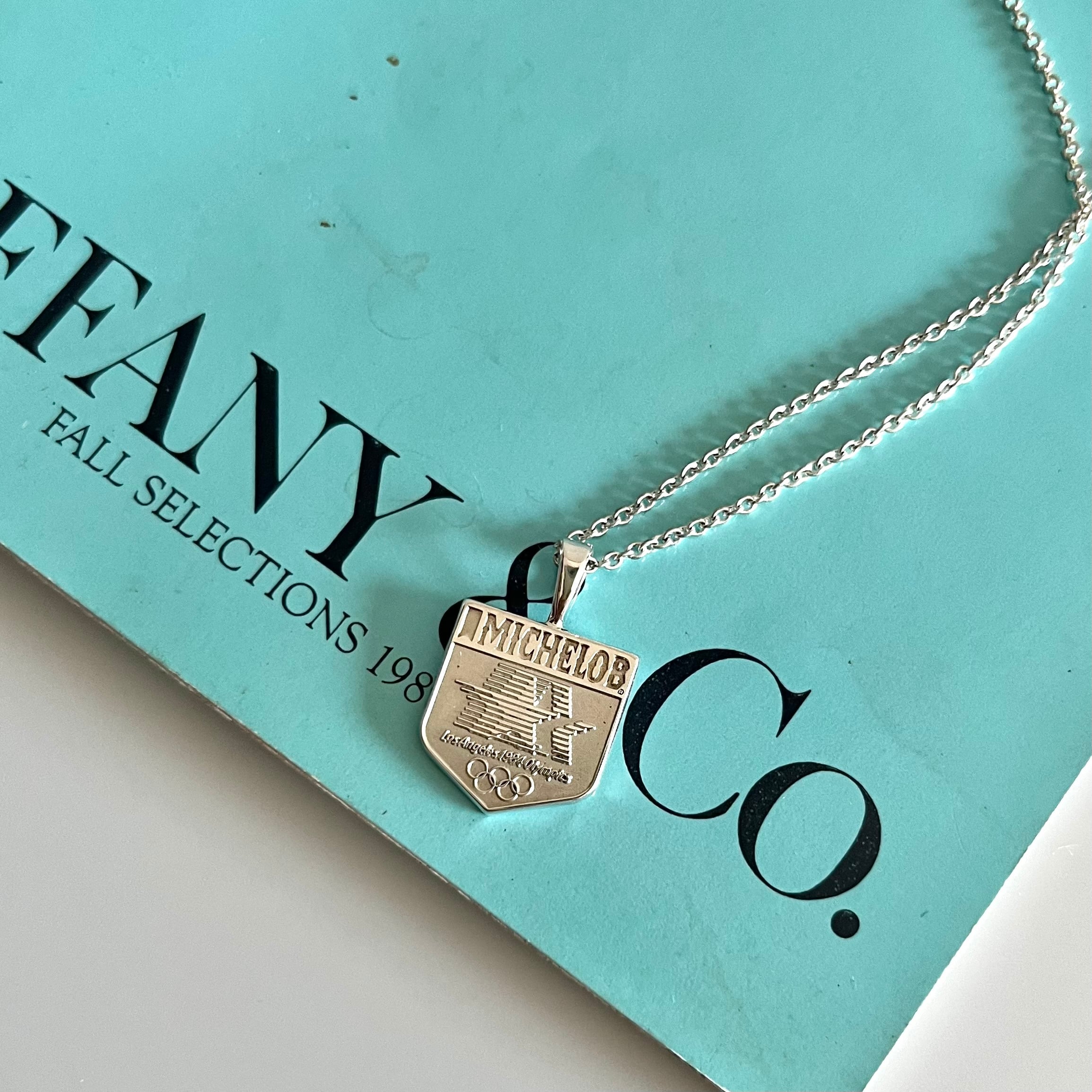 1984年に開催されたロサンゼルスオリンピックの公式スポンサーミケロブ社のオフィシャルピンバッジを制作したのはティファニー社。そのピンバッジをネックレスチャームにリメイクされたレアアイテムになります。